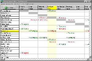 Damit immer deutlich sichtbar ist, in welcher Zeile/Spalte sich der Mauszeiger befindet, markiert das Programm die entsprechende Zeile/Spalte abwechselnd gelb bzw. grün. Dadurch fällt es auch sofort ins Auge, wenn man in der Zeile/Spalte verrutscht.