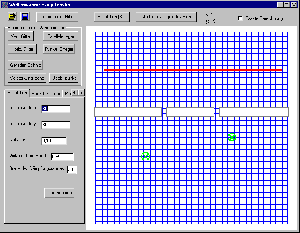 Im Hauptfenster können Objekte in die Wellenwanne gesetzt werden. Klicken Sie dazu zunächst rechts auf den betreffenden Schaltknopf (z.B. Punktf. Erreger). Fahren Sie jetzt auf das blaue Gitter und setzen Sie das Objekt mit der linken Maustaste an die gewünschte Stelle.